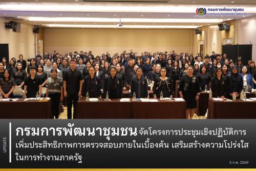 กรมการพัฒนาชุมชนจัดโครงการประชุมเชิงปฏิบัติการเพิ่มประสิทธิภาพการตรวจสอบภายในเบื้องต้น เสริมสร้างความโปร่งใสในการทำงานภาครัฐ